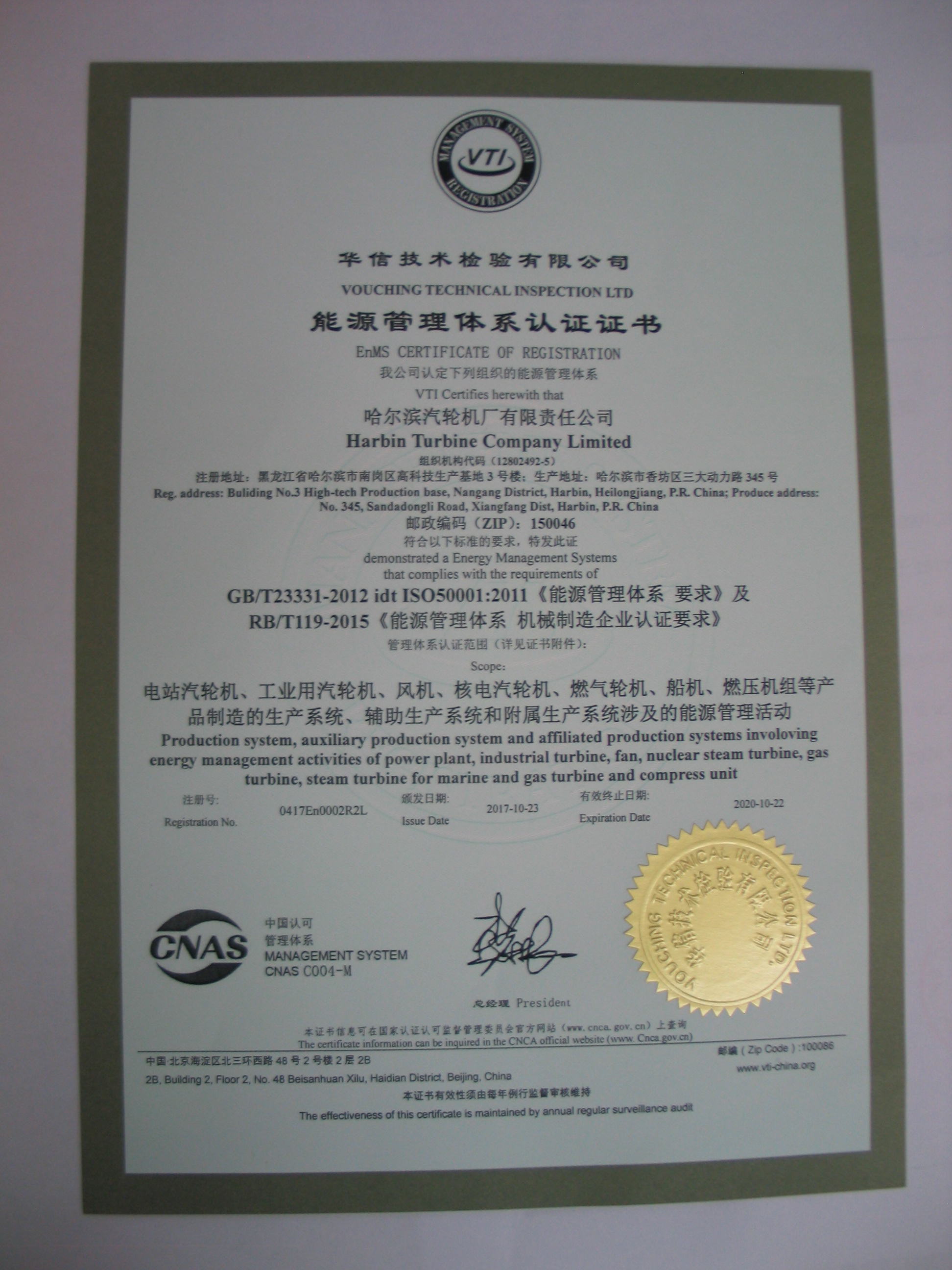日前,汽輪機公司獲得國內首家能源管理體系(EnMS)帶有“CNAS”環(huán)球能源體系認證標志證書,標志著公司生產項目的能源管理工作,符合國際能源管理體系的審核標準。