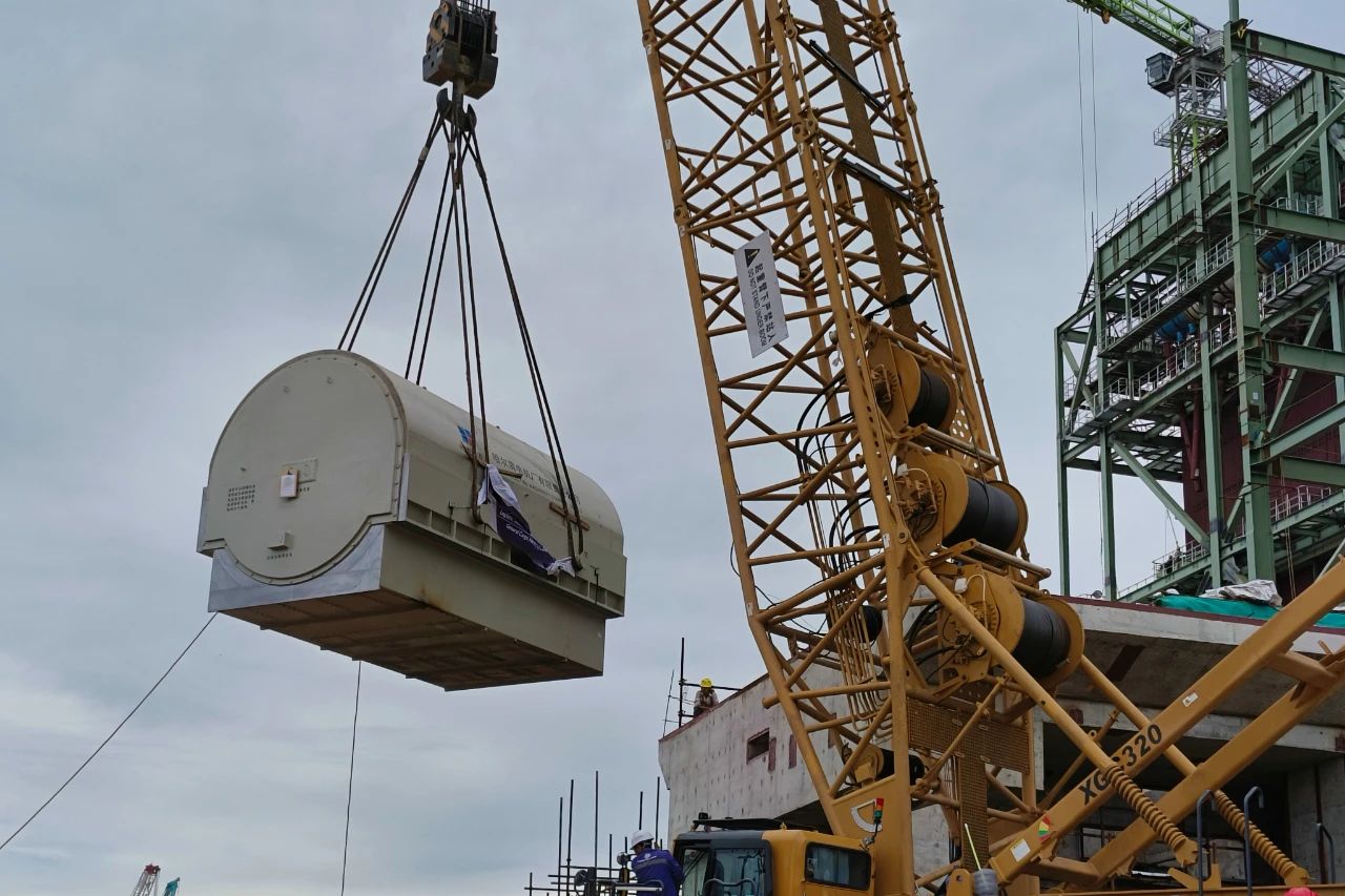 達(dá)來(lái)甘項(xiàng)目汽輪發(fā)電機(jī)由電機(jī)公司生產(chǎn),定子長(zhǎng)5.803m、寬4.16m、高3.743m,運(yùn)輸重量達(dá)141t,是達(dá)來(lái)甘項(xiàng)目最重的單體設(shè)備。為確保吊裝任務(wù)安全順利完成,達(dá)來(lái)甘項(xiàng)目團(tuán)隊(duì)在吊裝前組織設(shè)備廠家、施工單位對(duì)吊裝工序中的每一處細(xì)節(jié)進(jìn)行反復(fù)論證、推演,不斷優(yōu)化吊裝方案,監(jiān)督施工單位做好吊裝前安全、技術(shù)交底。吊裝過(guò)程中,各專業(yè)分工明確、配合緊密,技術(shù)人員、安全人員全程監(jiān)護(hù),作業(yè)人員嚴(yán)格執(zhí)行吊裝方案,落實(shí)各項(xiàng)安全技術(shù)措施。整個(gè)吊裝過(guò)程指揮有序、操作流暢、安全平穩(wěn),吊裝作業(yè)圓滿完成。