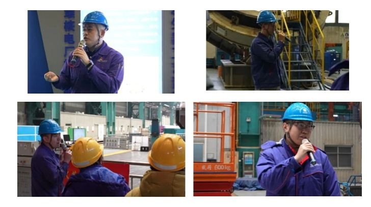 現(xiàn)場參觀時,丁道復(fù)介紹了公司歷史和典型產(chǎn)品,生產(chǎn)制造部團總支第一支部書記高靖博介紹了焊接設(shè)備和焊接后的檢驗處理工作,生產(chǎn)制造部團總支機加團支部書記劉方舟介紹了機加設(shè)備和加工產(chǎn)品,項目聯(lián)合團支部書記韓兆明介紹了三門4號蒸汽發(fā)生器的特點和功能。