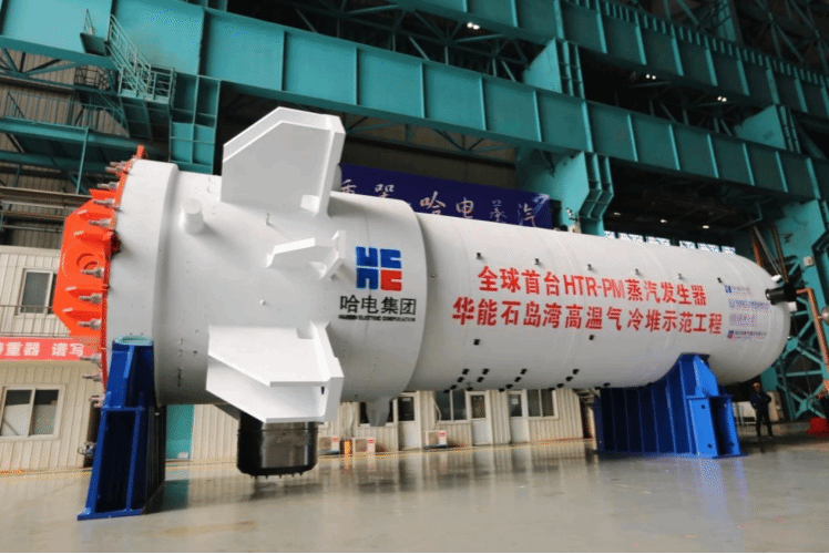 ★2023年12月6日,哈電集團參建的國家科技重大專項“全球首座第四代核電站——華能石島灣高溫氣冷堆核電站示范工程”正式投入商業運行。圖為哈電集團承制的高溫氣冷堆蒸汽發生器。