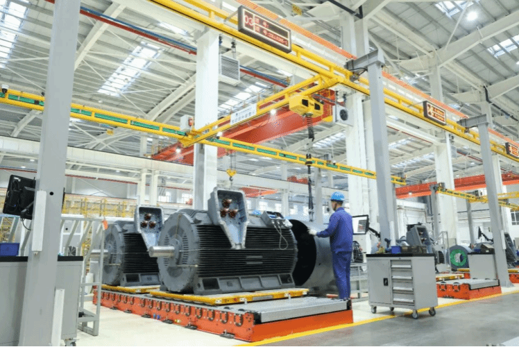 ★哈電集團高壓電機數字化裝配車間操作者正在使用KDK吊車進行裝配。