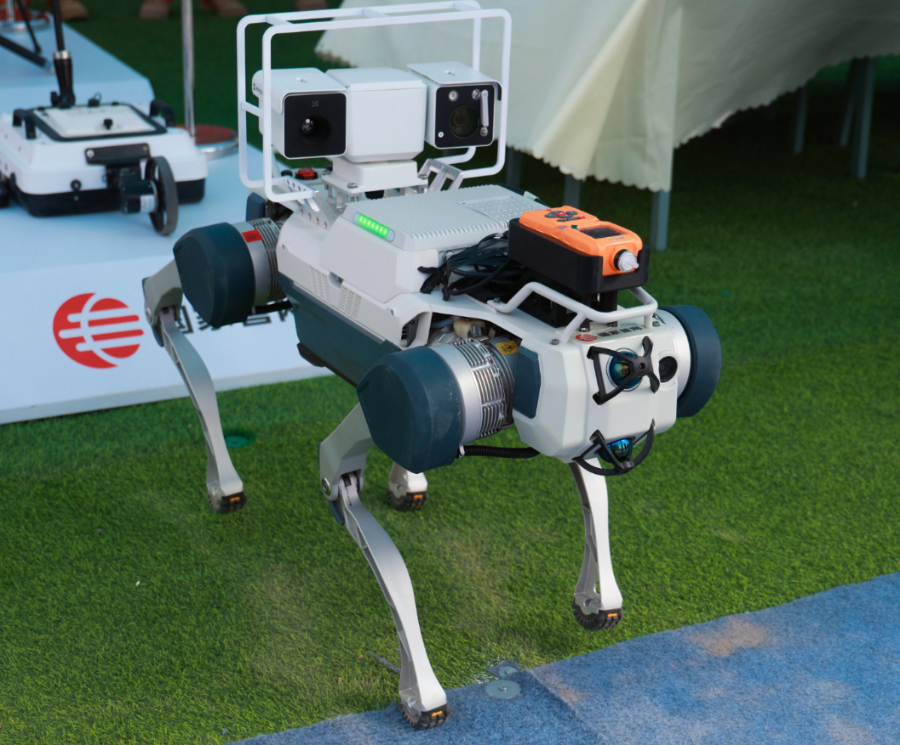 四足機(jī)器人與人形機(jī)器人則組成了“第一現(xiàn)場”的“先遣隊(duì)”。“四足機(jī)器人可以將40公斤物資馱在背上,仍能以20公里/小時(shí)的速度在各種地形間穿梭,實(shí)現(xiàn)設(shè)備物資短距離迅速搬運(yùn)。”工作人員表示,在搶險(xiǎn)現(xiàn)場如果存在可燃?xì)怏w或有毒有害氣體泄漏,還能通過多通道接口搭載氣體檢測、操作臂等輔助模塊,用四條仿生腿跨過各類障礙抵達(dá)“第一現(xiàn)場”進(jìn)行簡單處置操作和數(shù)據(jù)回傳。