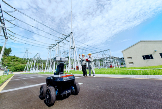 國網(wǎng)湖北電力員工運用智能巡檢機器人在十堰市茅箭區(qū)220千伏龍虎溝變電站進行設備巡視。