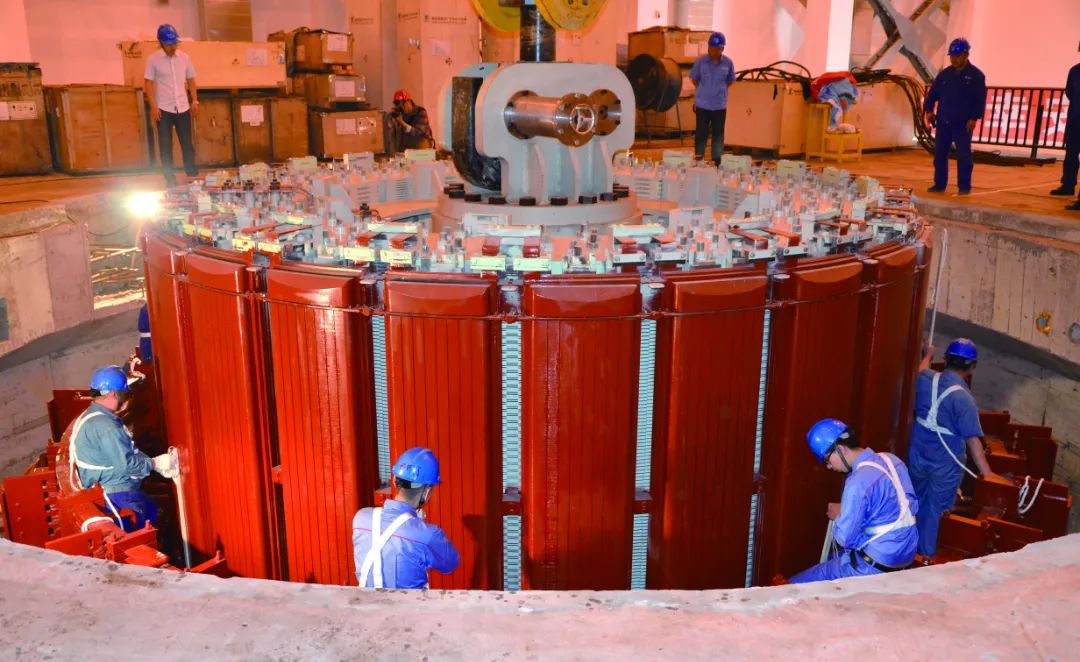 2013年,國產首臺800兆瓦巨型全空冷混流式水輪發電機組安裝于金沙江上的向家壩水電站。