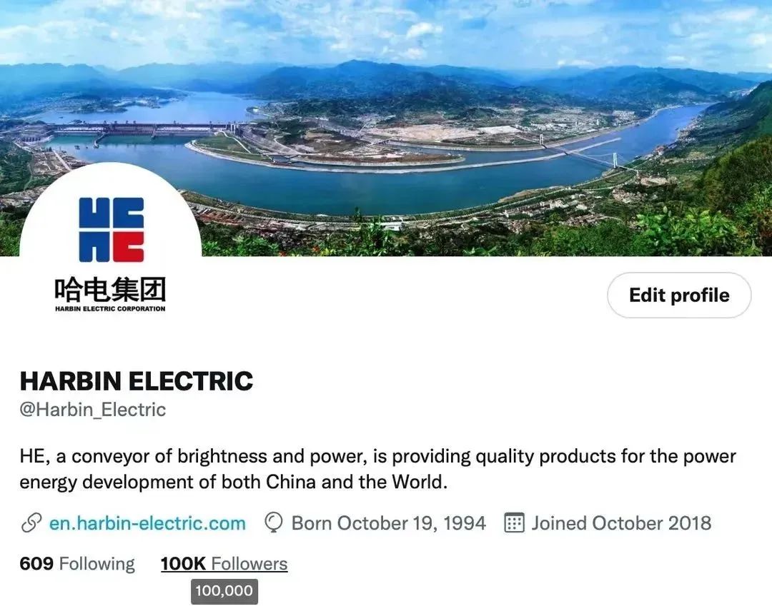 哈電集團(tuán)積極開展“一起向未來”“共話新時(shí)代”“美美與共”“弘揚(yáng)中華文化之美”等主題海外宣傳活動(dòng),提高外宣的覆蓋面和傳播效能,講好“一帶一路”哈電故事。2022年8月,哈電集團(tuán)推特粉絲超過10萬(wàn)人。