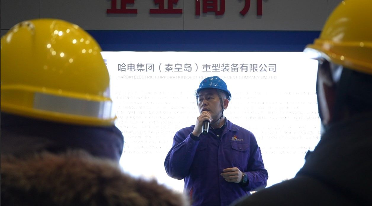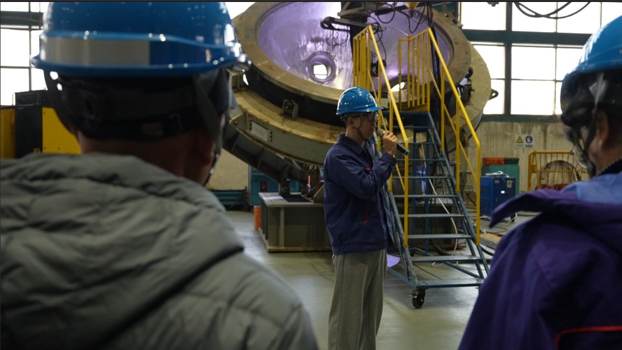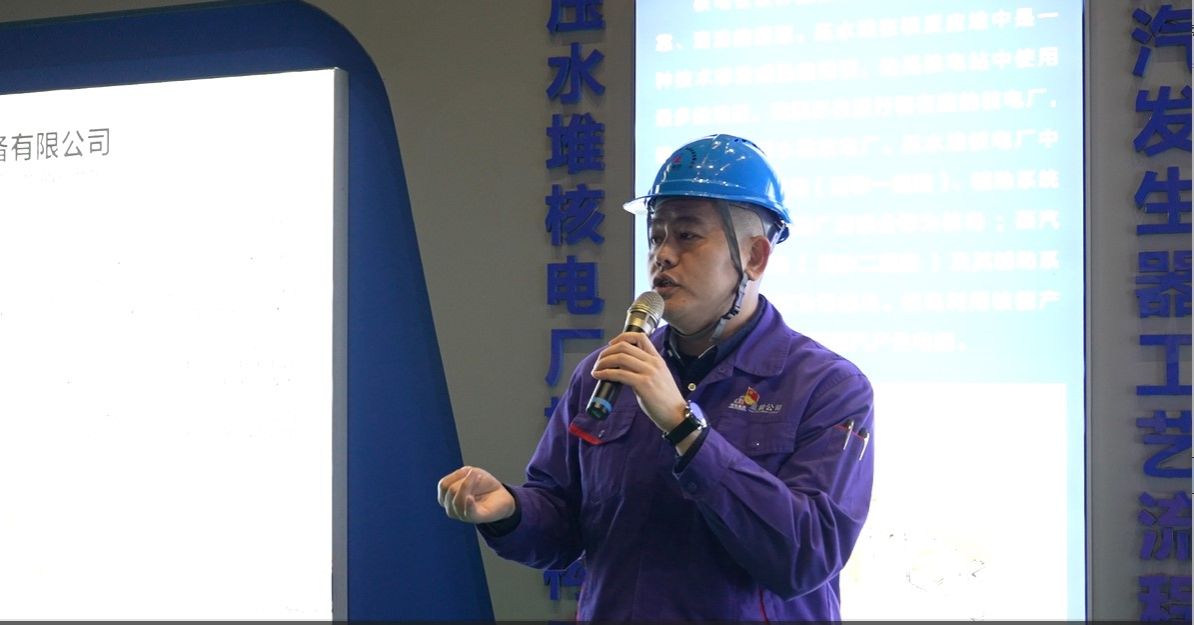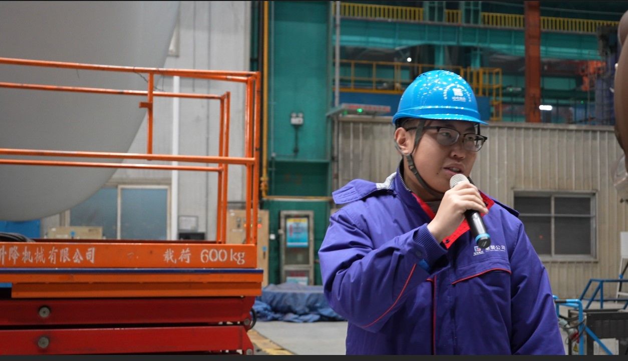現場參觀時,丁道復介紹了公司歷史和典型產品,生產制造部團總支第一支部書記高靖博介紹了焊接設備和焊接后的檢驗處理工作,生產制造部團總支機加團支部書記劉方舟介紹了機加設備和加工產品,項目聯合團支部書記韓兆明介紹了三門4號蒸汽發生器的特點和功能。
