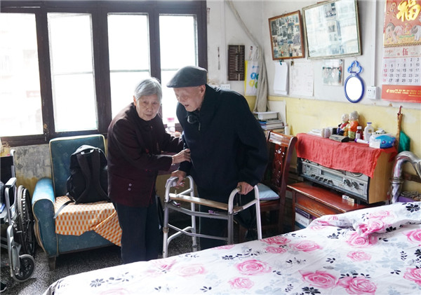 張富清和老伴在家(5月8日攝)。新華社記者 程敏 攝